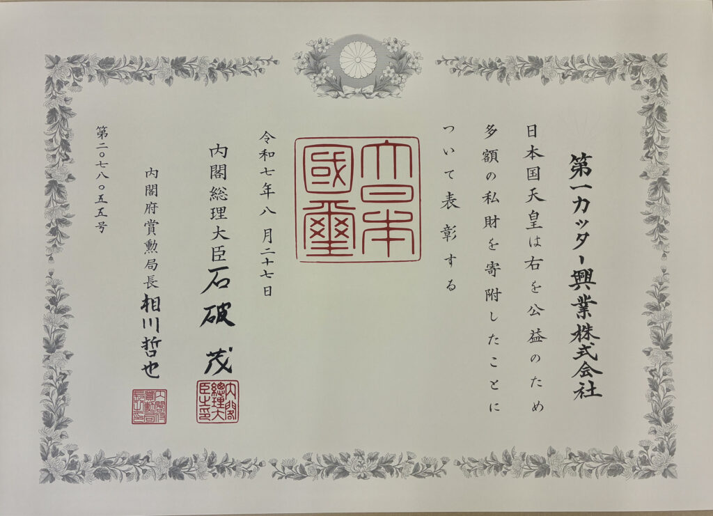 このたびの受章は、当社および従業員一同の社会貢献への思いが評価されたものと受け止めております。